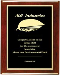 Piano Finish Rosewood plaque with LASER engraved premium double plating! The timeless beauty of engraving and metal combine to highlight your special recognition. Plaque features your logo and message laser engraved on your choice of a gold or silver premium metal plate. Great for scholastic achievements, employee recognition, company innovators, generous supporters, memorials, key distributors, dealers and more. Pricing includes decoration and personalization.