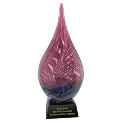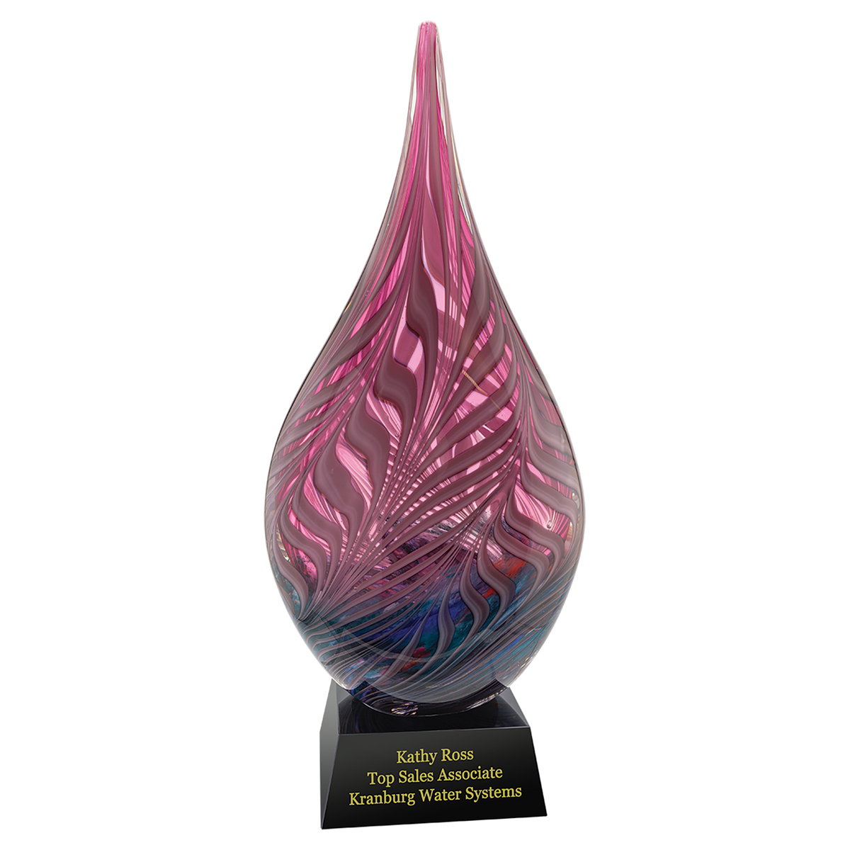 The Art Glass Pink Heart Award with Clear Base was purposely designed to be a beautiful art piece the recipient can proudly display in their home or office. This beautiful piece is perfect to gift as a corporate award or appreciation gift. Individually packaged in a velvet lined gift box. Your full color imprint on a gold or silver metal plate on the base. Pricing includes decoration and personalization.